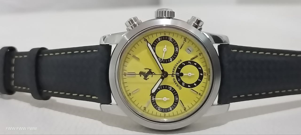 ( Sold )GIRARD PERREGAUX FERRARI CHRONOGRAPH 38MM STAINLESS STEEL YELLOW DIAL PREOWNED WATCH ONLY
