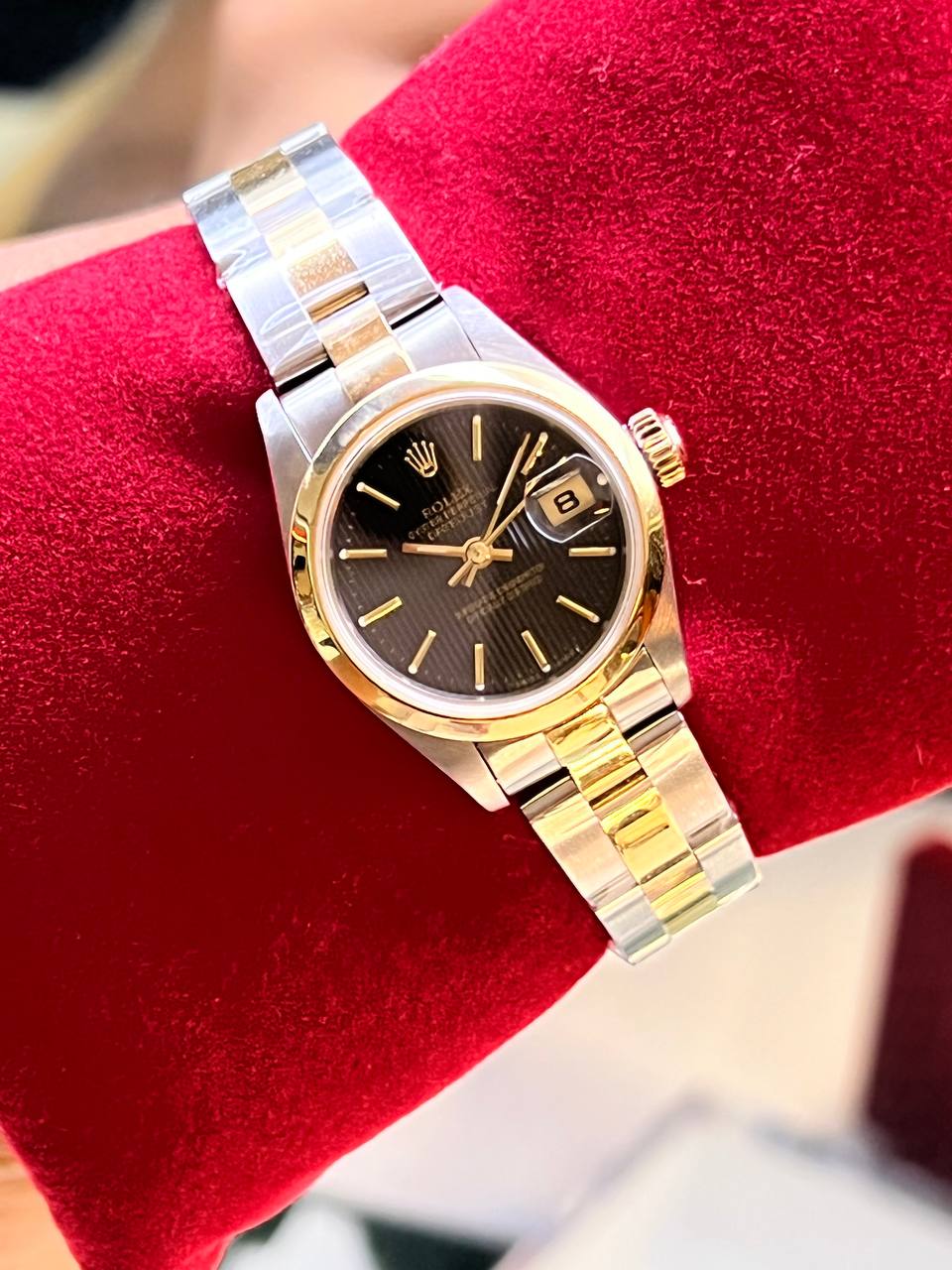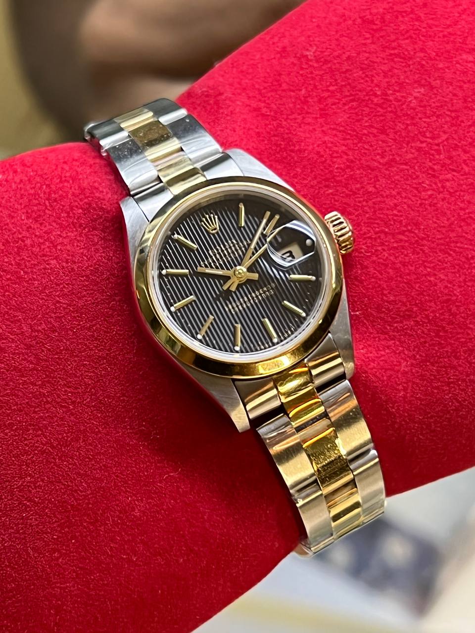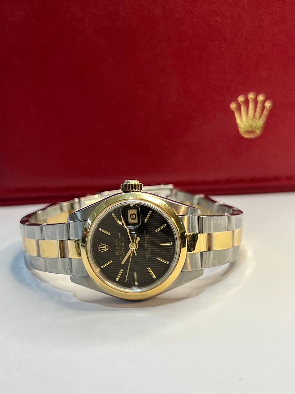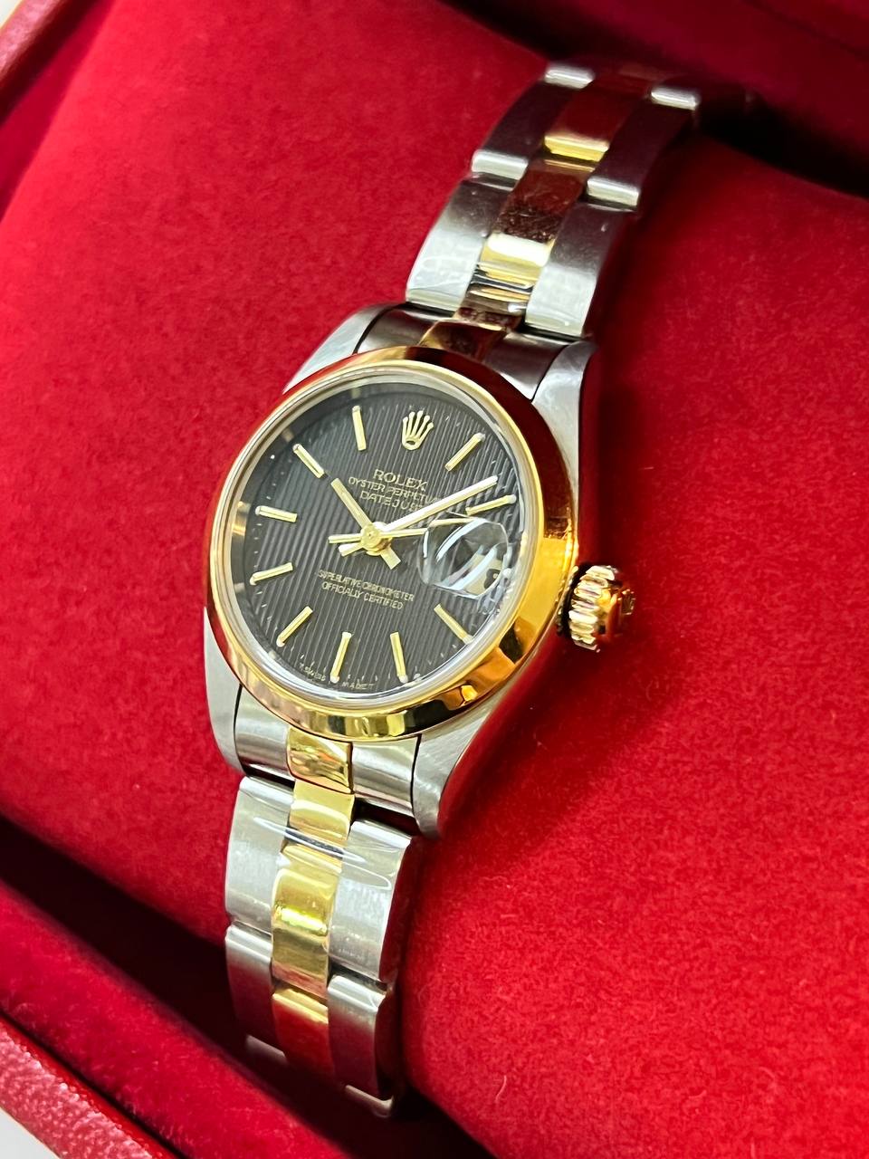(Sold) ROLEX DATEJUST 69163 26MM TWO-TONE BLACK TAPESTRY DIAL PRE-OWNED COMPLETE SET
